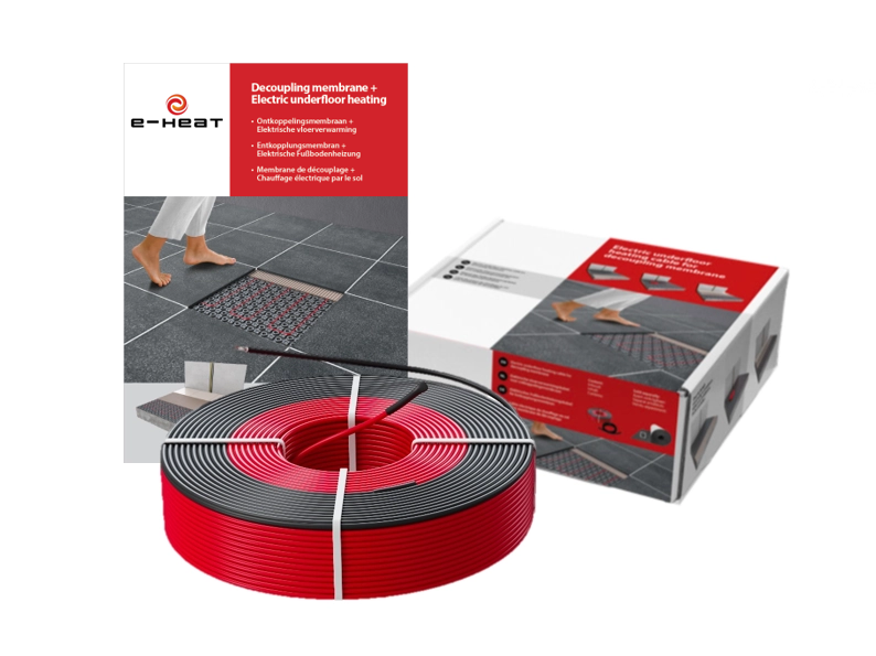 De verwarmingskabel wordt bij installatie bevestigd op een ontkoppelingsmat (met een lusafstand van 7,5 cm of 10 cm). De isolatie van deze kabel is gemaakt van FEP (temperatuur-bestendig kunststof) en de beschermmantel is van PVC, waardoor de verwarmingskabel zeer duurzaam en 100% waterdicht is.