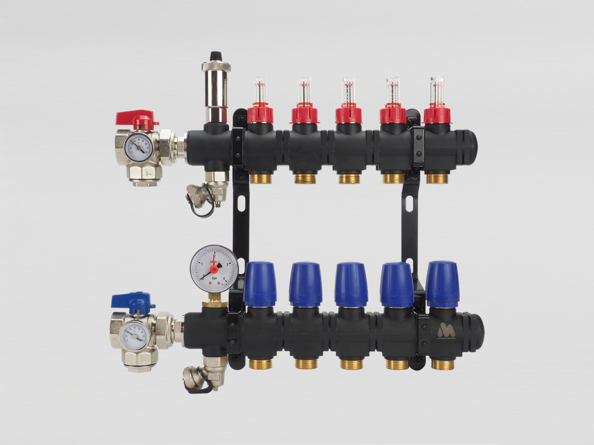 De MAGNUM EcoFlow open kunststof verdeler bestaat uit een kunststof module uit één geheel. Deze module is vervaardigd van een met glasvezel versterkte polyamide, waardoor hij bestand is tegen zowel hoge als lage temperaturen. Dit maakt deze verdeelunit uitermate geschikt voor zowel verwarmen als koelen, bijvoorbeeld in combinatie met een hybride warmtepomp die in de winter warmte levert en in de zomer koelt. De verdeler kan geschikt gemaakt worden voor hoogtemperatuursystemen met behulp van de meegeleverde mengunit met circulatiepomp.