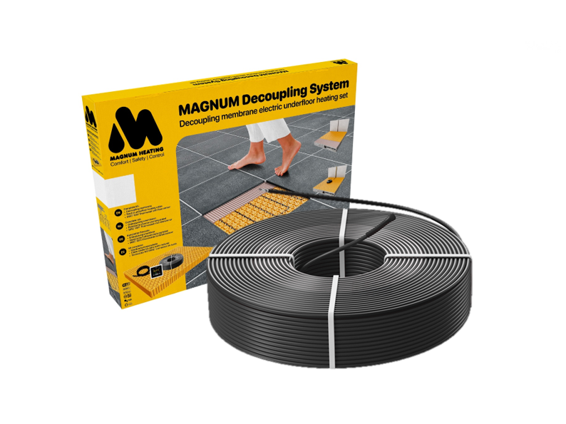 De MAGNUM MDC-verwarmingskabels kunnen worden geleverd als losse kabels of u kunt kiezen voor complete Decoupling Sets met ontkoppelingsplaten en thermostaat.