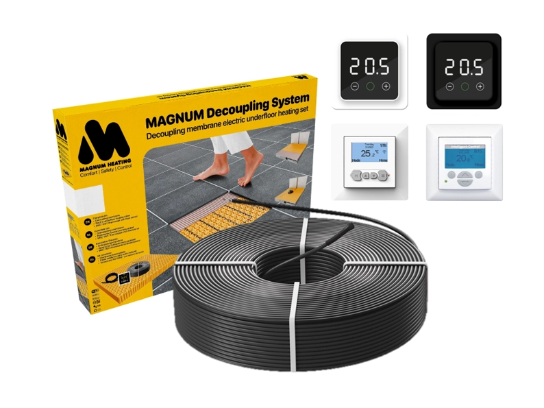 Deze MAGNUM sets met 4,5mm verwarmingskabel zijn verkrijgbaar in 15 verschillende kabellengtes en worden geleverd met een MAGNUM inbouw-thermostaat naar keuze. U kunt hierbij kiezen uit de F32, MIC² of MRC² met WiFi-functie of de gebruiksvriendelijke MIC-klokthermostaat.
