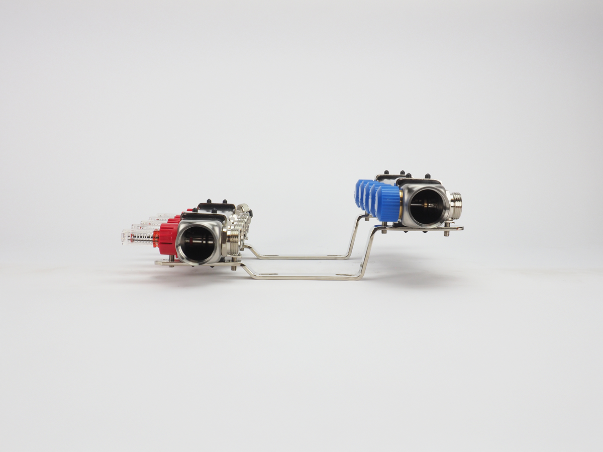 Deze basisuitvoering van de open RVS verdeler bestaat uit roestvast stalen modules uit één geheel, die door middel van ophangbeugels aan de wand gemonteerd worden. De verdeler is geschikt voor laagtemperatuursystemen en voorzien van inregelbare flowmeters waarmee de doorstroom van water per groep ingeregeld kan worden.