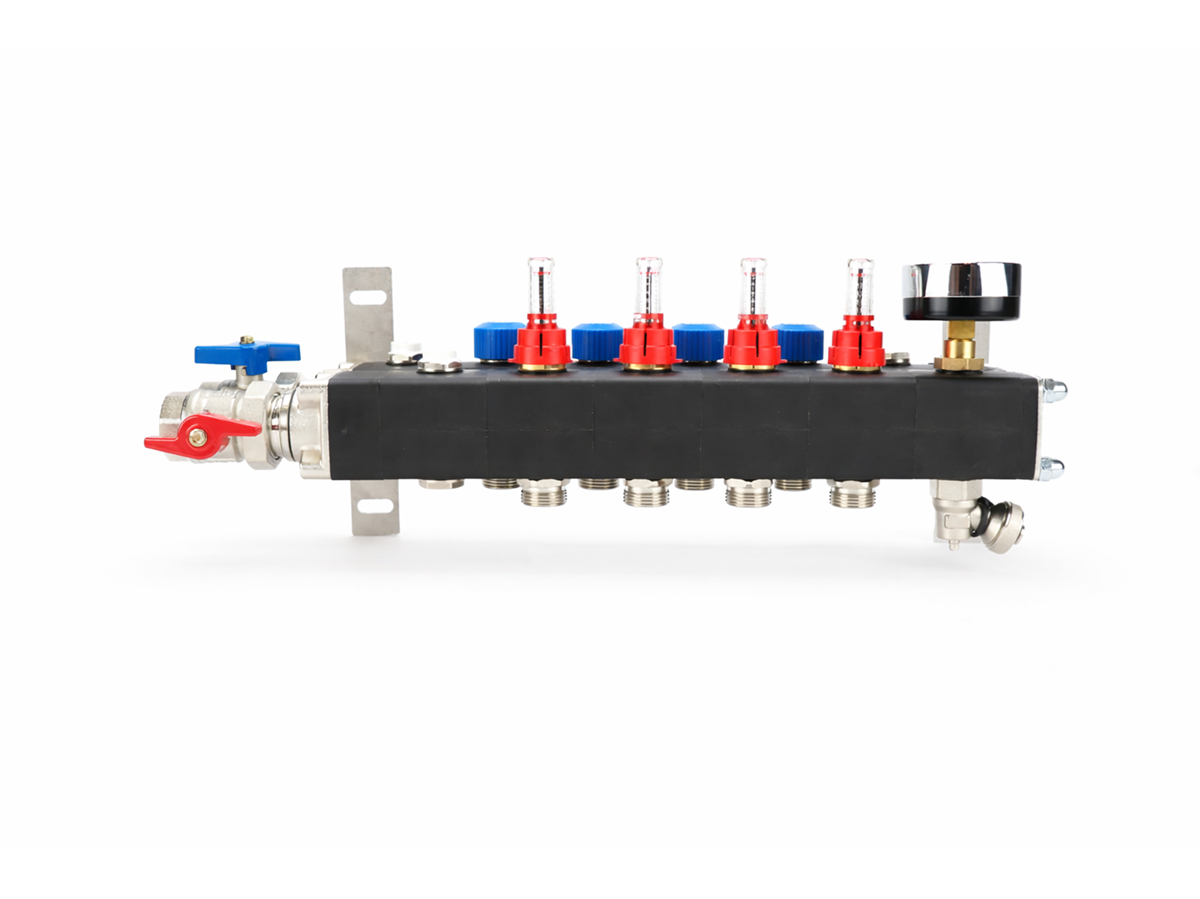 Sterke kunststof vloerverwarming verdeler van losse componenten met flow-meters inbegrepen;