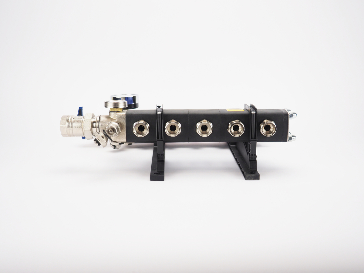 De losse elementen zijn vervaardigd van een met glasvezel versterkte polyamide, die zeer geschikt is voor hoge, maar ook lage temperaturen. De elementen hebben een dubbelwandige opbouw waardoor automatisch een isolatielaag wordt gevormd. Dit maakt deze verdeler uitermate geschikt voor verwarmen, maar ook voor koelen. Door deze isolatielaag ontstaat nagenoeg geen condensvorming op de verdeler. Deze verdeler wordt daarom steeds vaker toegepast in combinatie met een warmtepomp, die in de winter verwarmd en in de zomer koelt. Standaard is deze verdeler voorzien van 1” kogelkranen, 2 automatische ontluchters en inregelbare flowmeters.