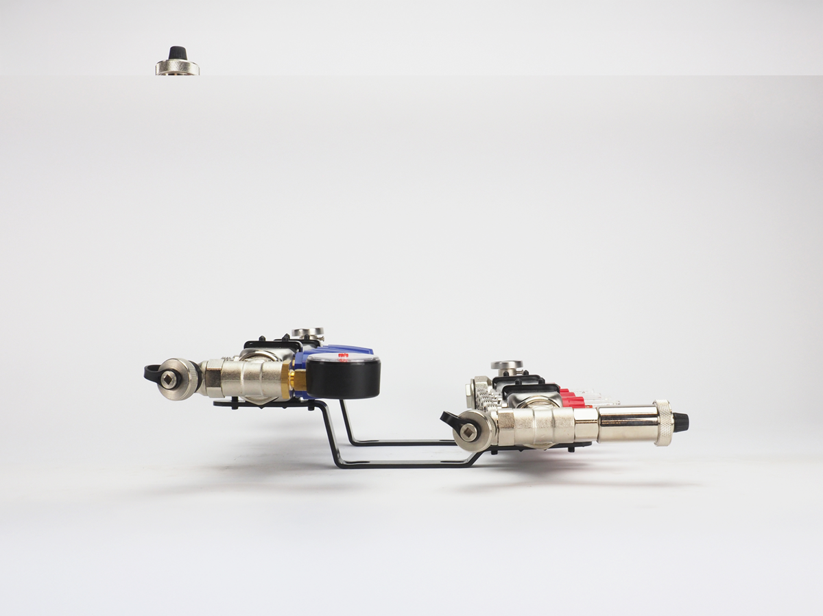 Dit type verdeler kan geschikt gemaakt worden voor verwarmingssystemen met hogere aanvoertemperaturen vanaf 50°C door middel van de temperatuurregelaar.