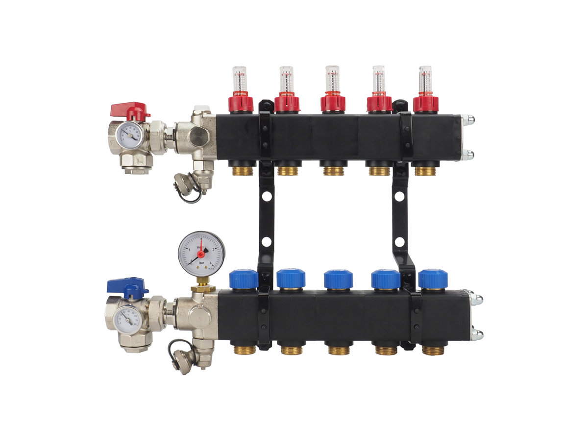 Sterke kunststof vloerverwarming verdeler van losse componenten met flow-meters inbegrepen;