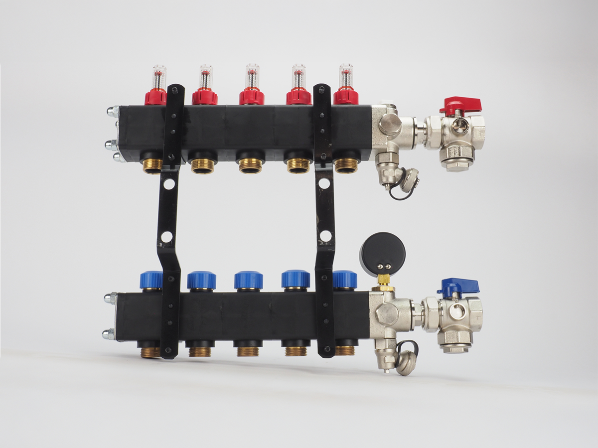 Sterke kunststof vloerverwarming verdeler van losse componenten met flow-meters inbegrepen;