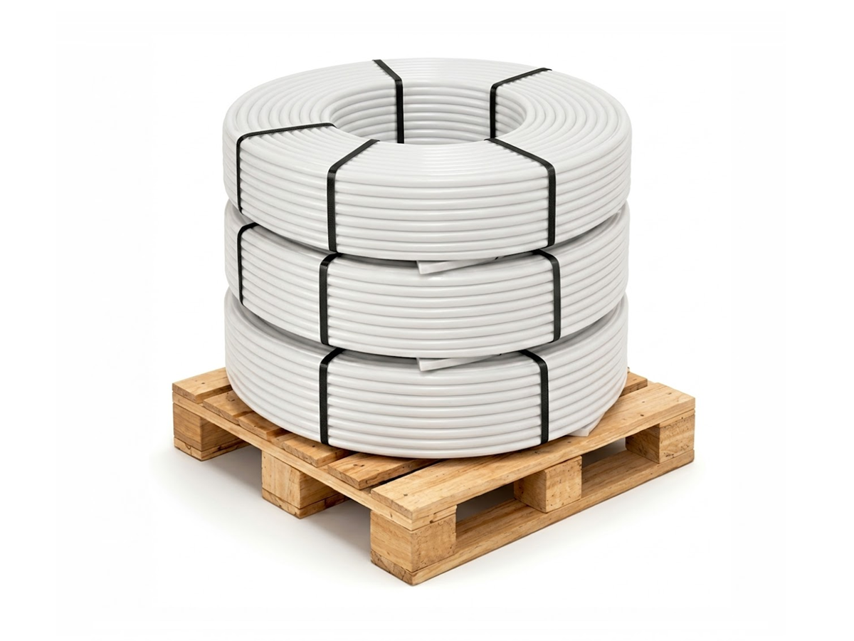 PE-RT buizen met een uitwendige diameter van 20mm hebben een wanddikte van 2,0mm en zijn beschikbaar op rollen van 120m en 500m. Wanneer u een pallet met 3 rollen van 500m aankoopt dan profiteert u van een aanvullende korting (zolang de voorraad strekt).