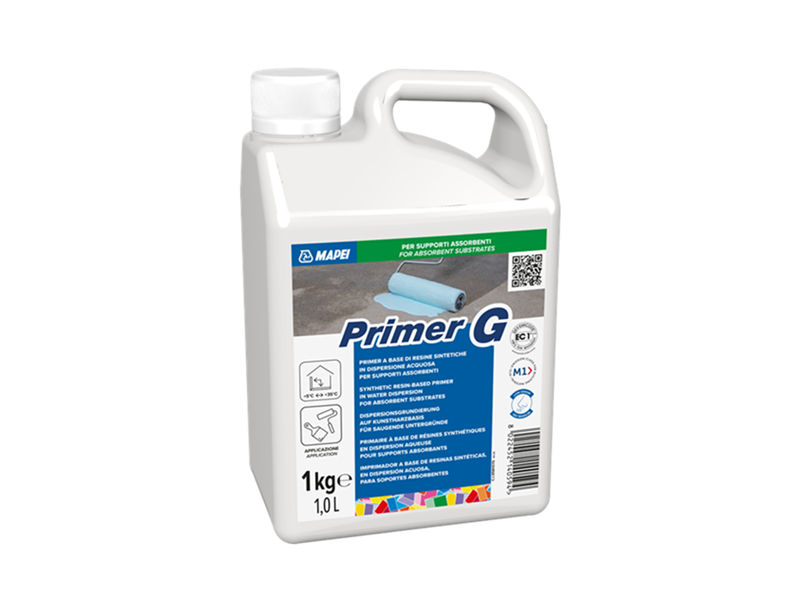 PRIMER G is een dispersieprimer op basis van kunsthars ter verbetering van de hechting van egaliseermiddelen op cement- of anhydriet- en gipsondergronden binnenshuis.