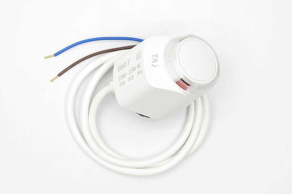 De IMI TA Thermomotors zijn spanningsloos gesloten elektrothermische servomotortjes, die gebruikt worden voor het automatisch bedienen van elk van de afsluitkranen van de vloerverwarmingsgroepen op de verdeler.